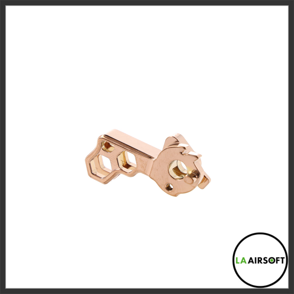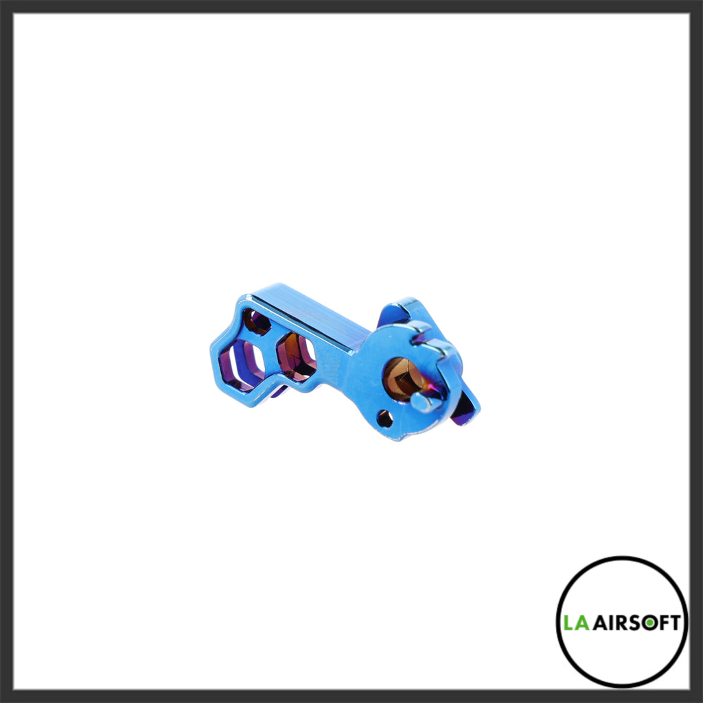 The LA Capa Customs HIVE Hammer comes in 12 unique colors and is made of a strong 7075 aluminum material.  It is designed to make a "ding" sound when shooting for extra satisfaction.  This hammer is built to TM spec to be drop in, and provides the perfect amount of lightweight feel and a pop of color for your build.