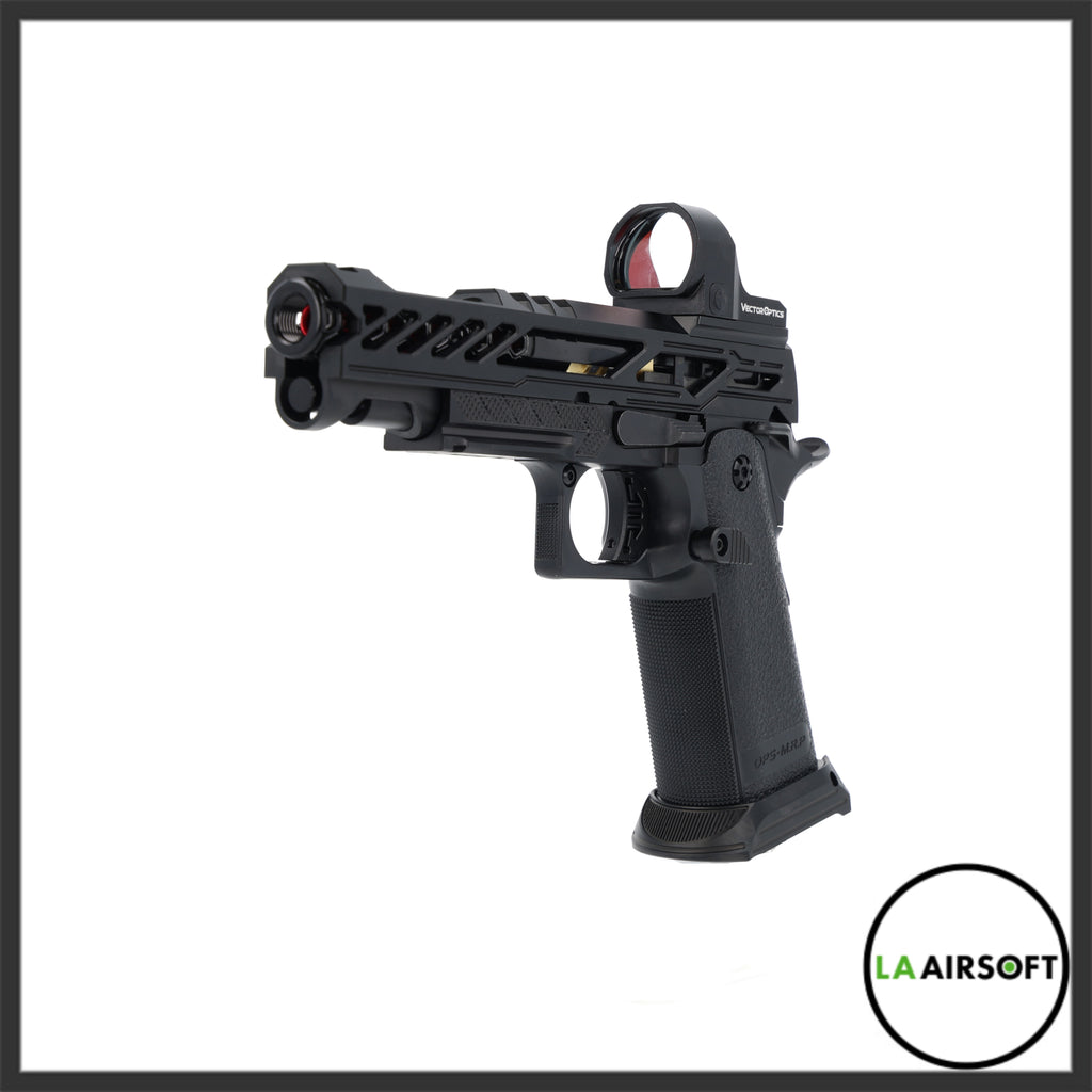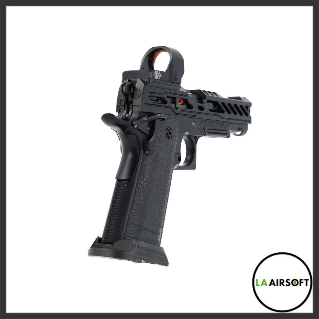 This airsoft pistol prebuild features a all black build. This 5.1 Hi Capa build was made to dominate the field and turn heads.